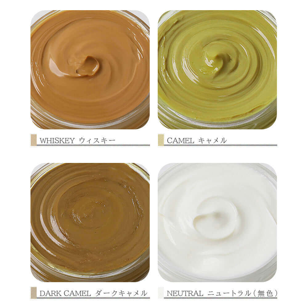 | 使用方法 | ●ブラシで靴のホコリを払い、クリーナーで汚れを落としておきます。 ●少量のクリームを布や塗布用ブラシに取り、全体に薄く伸ばします。 ●ブラシで磨きこみます。 ●キレイな布や仕上げミットで仕上げ磨きをします。 |