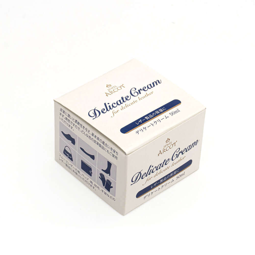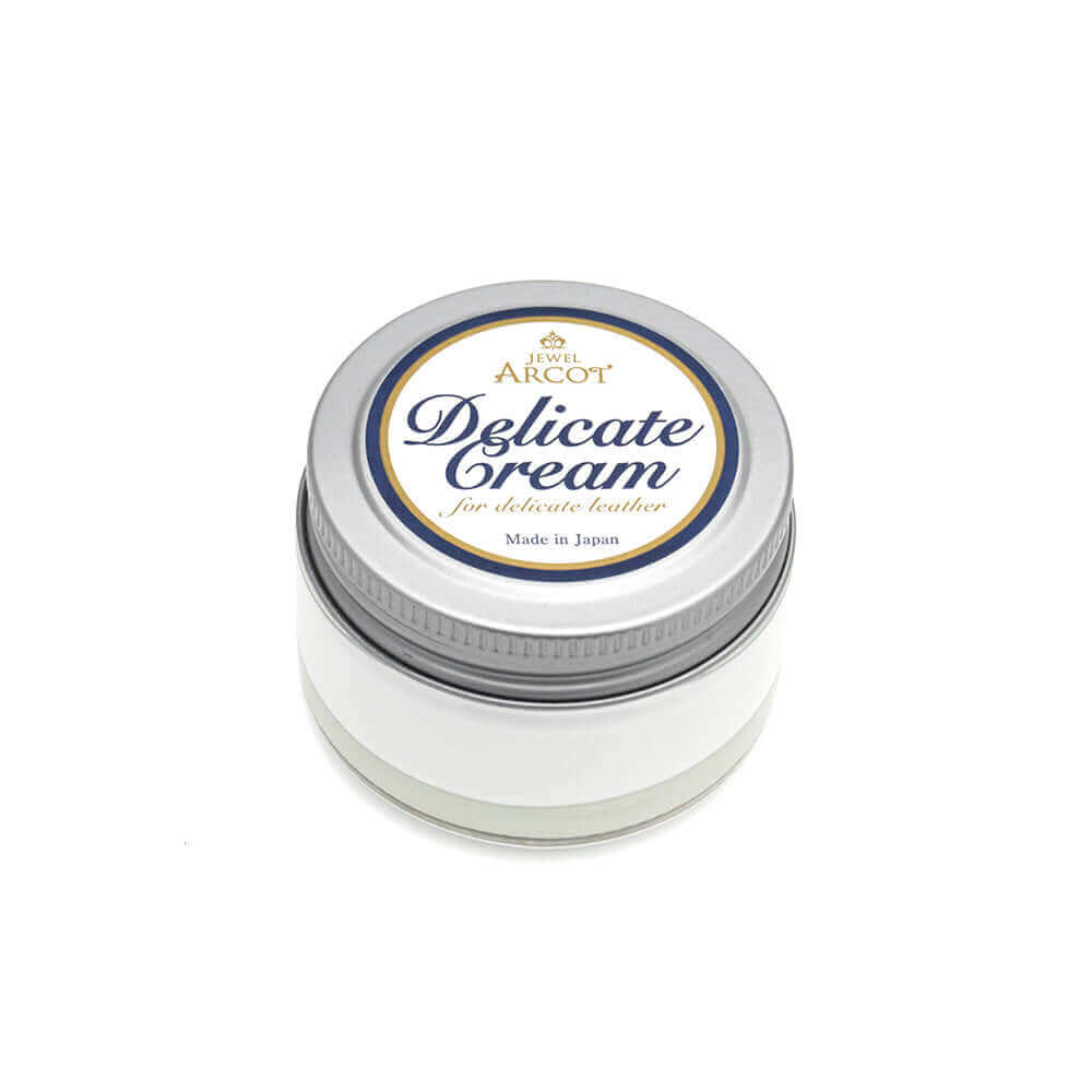 ジュエル アルコットのデリケートクリームは、一般的なゲル状のデリケートクリームと比べて粘土があり、なめらかなテクスチャで塗りやすいです。バッグや手袋をお手入れした際にクリーム臭がしない無臭タイプ。無色なので、どんな色の革製品にも使えるというメリットもあります。