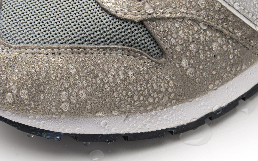 スニーカー専用に選び抜いた原料で、生地の風合いを守りながら強力に撥水。JIS1092:2020シャワー試験で4級以上をクリアしています。