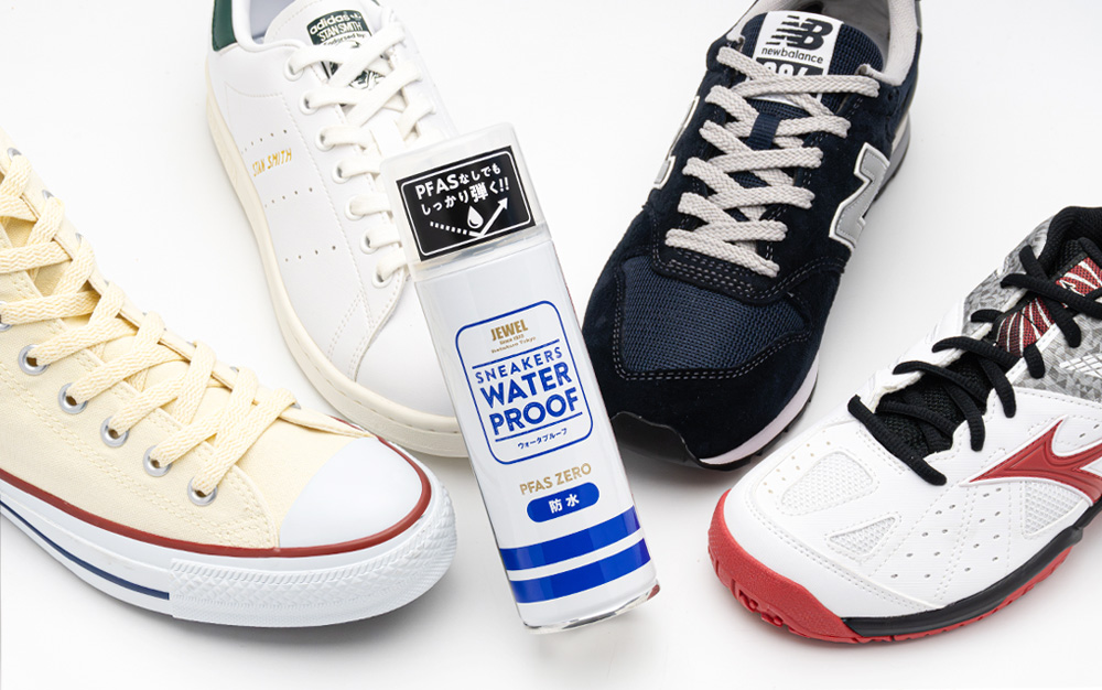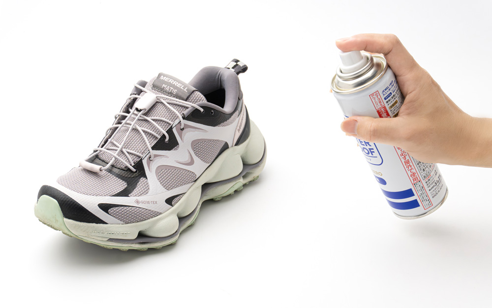 高い撥水性能と安全性を兼ね備えたPFAS(フッ素)不使用のスニーカー用防水スプレー。