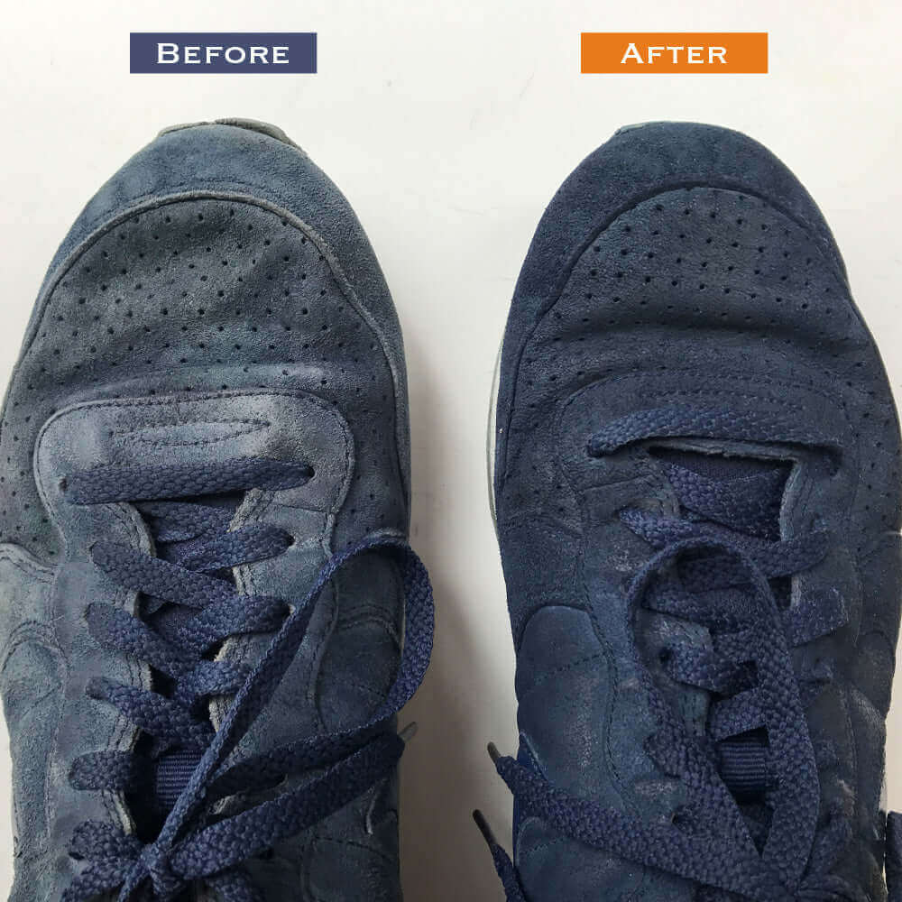 | 使用上の注意 | スエードマジックペンは、プロの現場で使用される染料が使われているため「染まる」のが特長です。 そのため、デイリーケアの一環の「簡単な補色」ではなく、本格的な色補修をするための用品になります。 ・全体的に色が抜けて古ぼけて見える。 ・クリーニングしても汚れが落ちず、あまり綺麗に見えない。汚く見える。 ・色あせが激しい箇所や、シミや汚れ等、色を入れて隠したい部分がある。 ・元の色より濃くなっても問題ない。 この様な状態にお勧めします。 スエードマジックペンは「色を補充して綺麗に見せる」ものなので、元色より確実に色が濃くなります。 色あせや変色、汚れ・シミなどがある状態で、薄く色を入れても綺麗には見えません。濃くしっかり色を入れることにより、見栄えがよくなります。 |