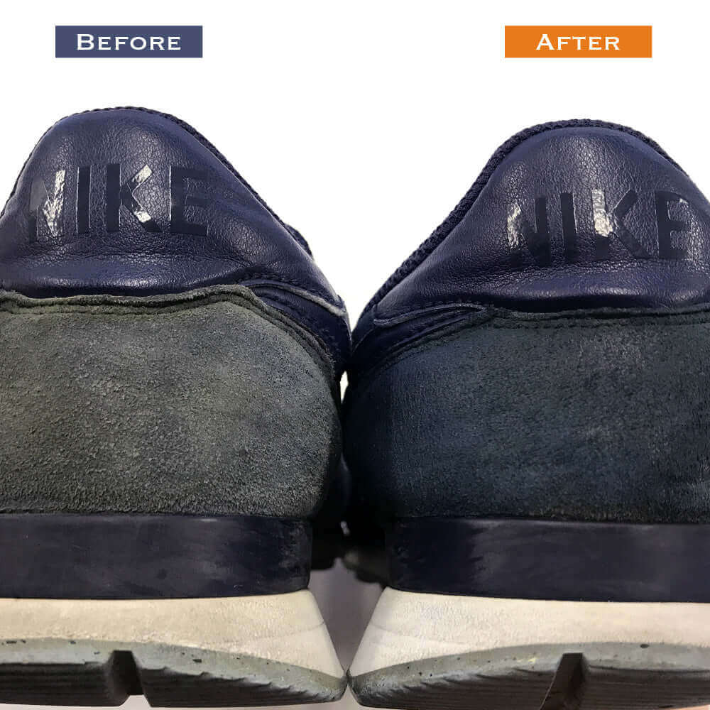 | 使用方法 | 1.補色する前に、表面の汚れやホコリを専用ブラシやクリーナーで落として下さい。 汚れをきちんと落としてから補色しないと、染料が綺麗にのりません。 同シリーズのレザークリーナーで洗浄することをお勧めします。 2.キャップを閉めたままボトルをよく振って下さい。 3.キャップを取り、不要な紙の上でインクが出るまで繰り返しペン先を押し付けて下さい。 ペン先にインクが染み込むまで、押して離すを繰り返して下さい。 4.補色したい部分に優しくペンをすべらせて色をのせて下さい。 スニーカーのサイドラバーなど、染めたくない部分にはマスキングテープをご使用下さい。 5.自然乾燥させた後、ブラッシングをして下さい。 24時間以上乾燥させることで、色移行のトラブルを防止します。 また、染料が乾くと束感が出ますが、ブラッシングすると毛並みが整い色味が落ちつきます。 ※毛束になって固まっていると色が濃く見えます。 ★ブラッシング後に色味を確認し、もっと濃くしたい場合は4〜5を繰り返して下さい。 6.最後に、保護スプレーをかける 基本的に染料仕上げの物はデリケートで、色移りの心配もあります。同シリーズのレザー&テキスタイルプロテクターで革を保護することをお勧めします。 ※本製品は、表革(染料仕上げ革)にもお使い頂けます。その場合の仕上げはプロテクションクリームをお使い下さい。 |