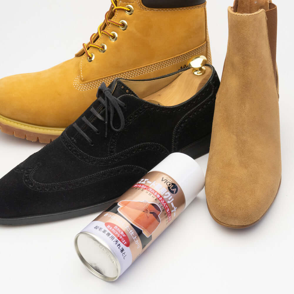 | 注意 | ●万一目に入った場合は、こすらず流水でよく洗い流し、痛みがおさまらない場合は医師の診断を受けてください。 ●人体・ペット・機械類など用途以外のものへの使用は避けてください。 ※このクリーナーは、雨水など、水を媒介とする汚れ用に処方されています。油脂や飲食物等、油性の汚れには効果が限定的です。 ※ご使用後はやや色が濃くなったり、毛の風合いが固くなる場合があります。ベージュやキャメル等、薄い色の靴には、こすって落とす消しゴムタイプのヴィオラ 強力スエード汚れ落としの方をおすすめします。 ※部分汚れや軽度の汚れには、上記の消しゴムタイプのクリーナーをお使い下さい。 ※本商品は、かなりひどい全体汚れのほぼ最終手段としてお使い頂くことをお勧めします。 |