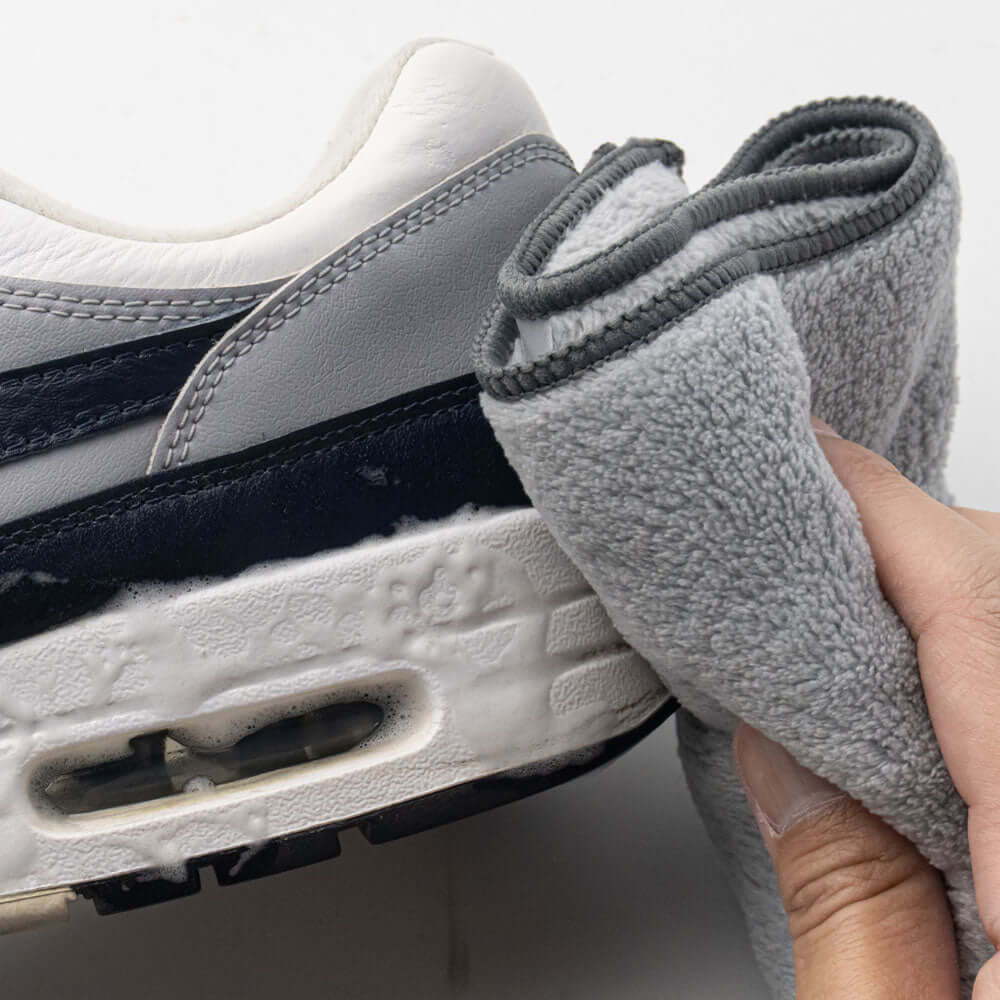靴の表面に残った洗剤を付属のタオルで拭き取り陰干ししてください。