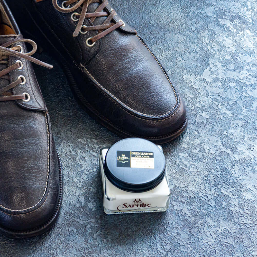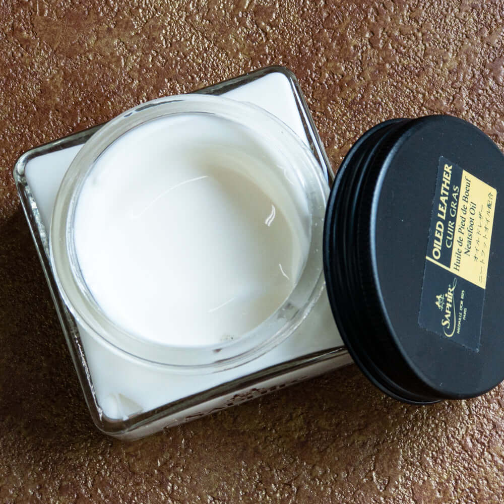 オイルレザーをさらっと仕上げるクリーム。マットに仕上がるので、光沢を出したくないもともとマットなタイプの革や、パラブーツでおなじみのリスレザー、クロムエクセルなどにもおすすめです。