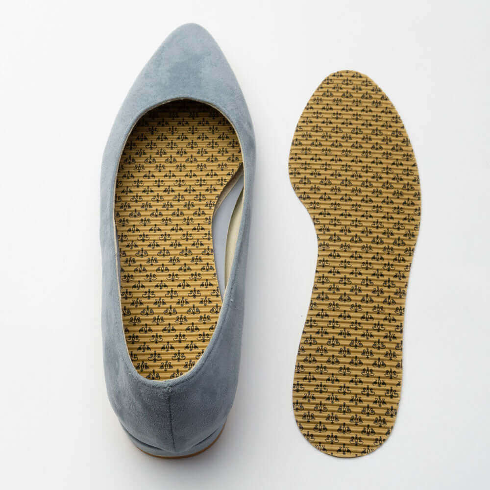 2~3日に1回の使い捨ての紙製インソールです。抗菌効果で靴の中が爽やかで快適です。革靴・ビジネスシューズ・パンプスなどのムレやすい靴の脱臭・吸汗にオススメです。デパート等の立ち仕事の方に人気のインソールです。