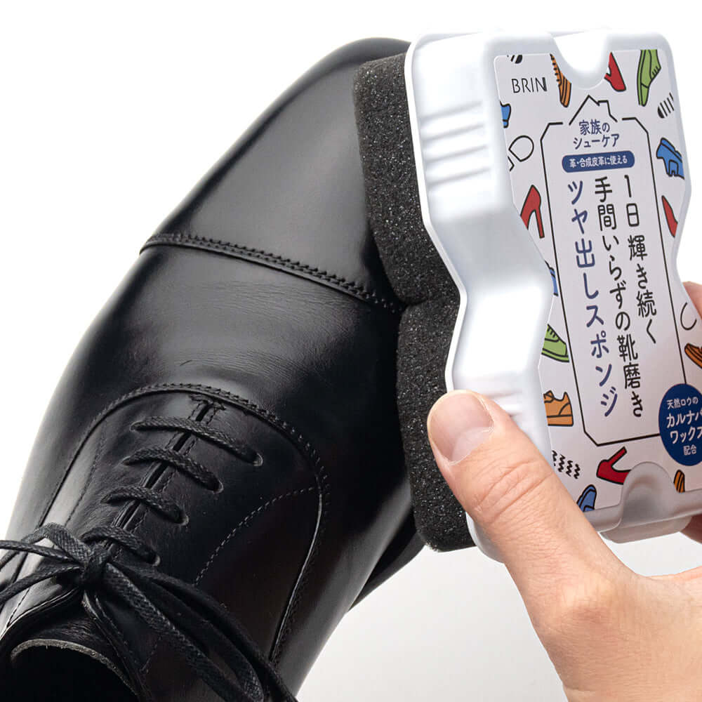 スポンジで拭くだけ!10秒で靴がピカピカになる靴磨きスポンジ。100円ショップの同類商品とは「ツヤ」と「もち」が断然違います。