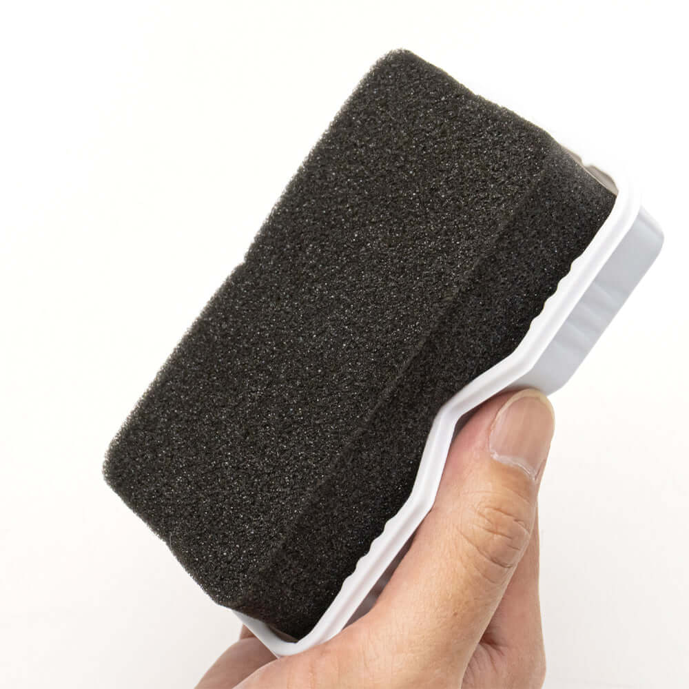 スポンジは、裏返して両面使うことができます。靴の状態(汚れ具合)や履く頻度にもよりますが、実質30回以上お手入れが可能です。また、片面は黒い靴用、もう片面は茶色の靴用、といった使い分けもできます。