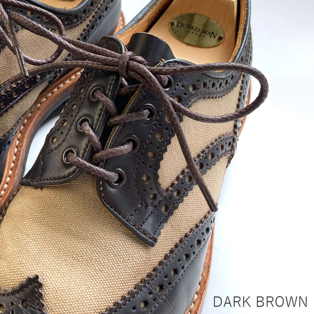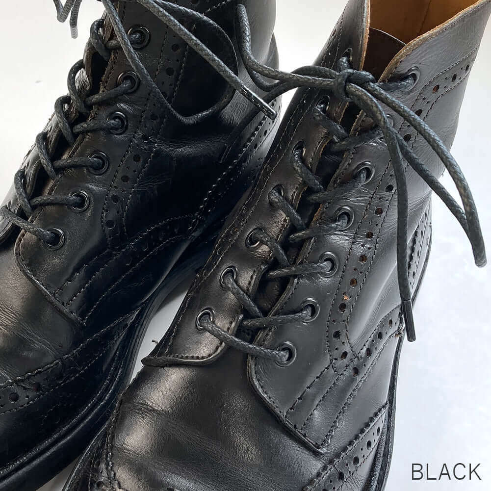 レザーシューズにおすすめ。特に、トリッカーズ モールトン等のカントリーシリーズの靴やブーツに合う太めのロー引き丸紐です。高品質日本製靴紐。