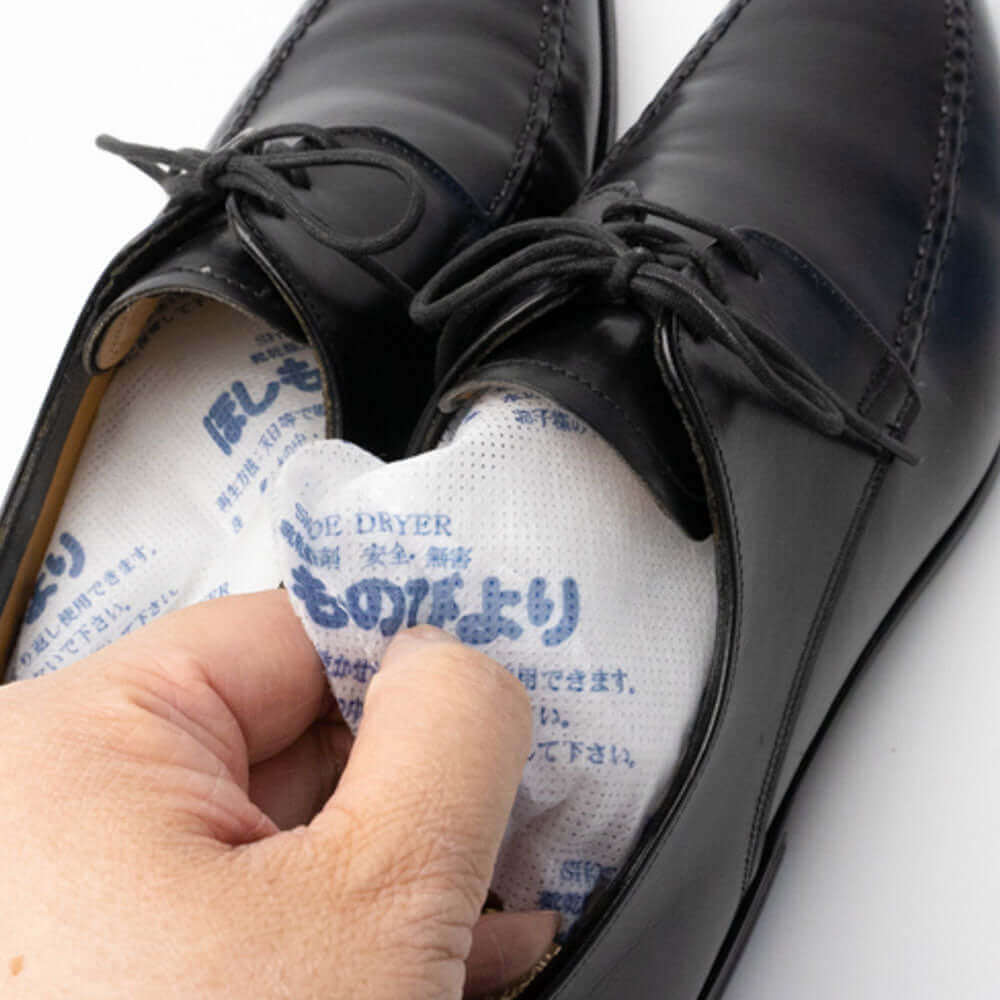 | 用途 | 靴の中の除湿・乾燥、脱臭。 【特長】 ●雨に濡れた靴や、スポーツ後や汗をかきやすい方の靴の中を素早く乾燥し、靴内環境を衛生的にします。 ●陽に干すだけで効力が回復し、繰り返し使えます。 ●袋が二重になっているので、とても丈夫です。 ●スニーカー、ブーツ、ビジネスシューズ、パンプスなどさまざまな靴に使用できます。 ●抗菌防臭加工で清潔です。 |