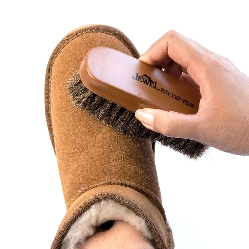 毛足が長くやわらかな使い心地の馬毛ブラシ。デリケートなムートンブーツのブラッシングに最適です。